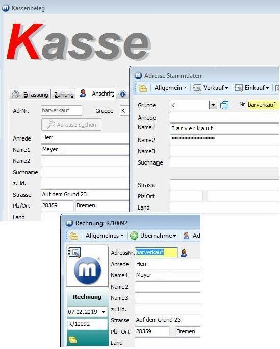 Übernahme von Barverkauf-Stammdaten oder manuell erfassten Adressdaten von Kasse zu Rechnungsbeleg