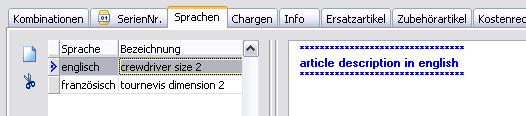 Fremdsprachentexte des Artikels (Ausschnitt aus Artikelstammdaten)