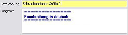 Standard-Bezeichnung und -Langtext für Artikel (Ausschnitt aus Artikelstammdaten)