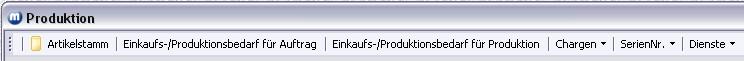 Einkaufs-/Produktionsbedarf für Auftrag und/oder Einkaufs-/Produktionsbedarf für Produktion: Lag einer Produktion ein Auftrag zu Grunde (im Auftrag: -> Übernahme zur Produktion), werden beide Menüs angezeigt. Wurde die Produktion - ohne vorhergehenden Auftrag - angelegt, wird nur das Menü Einkaufs-/Produktionsbedarf für Produktion angezeigt.