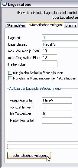 Lageraufbau (automatisches Anlegen der Lagerplätze)