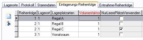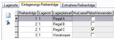 2. Legen Sie im Register Einlagerungs-Reihenfolge die Reihenfolge fest, nach der die Zuordnung beim Wareneingang erfolgen soll.