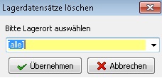 Lagerorte, die erledigt sind, d. h. keine Bestände bzw. Werte aufweisen (hierzu zählen also auch die Mengen aus Aufträgen, Packzettel, Lieferschein usw.), können gelöscht werden. Der Standardlagerort wird jedoch niemals gelöscht werden.