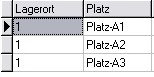 Hier ein Beispiel für den Lagerort 1, mit verschiedenen Lagerplätzen - ohne Lagerplatzarten