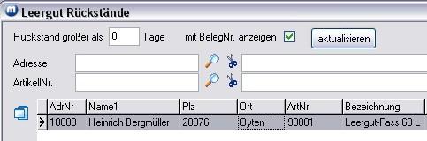 Im Menü Artikel/Leergut/Rückstände können Sie sich die Leergutrückstände ansehen.
