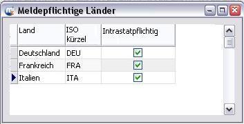 Die Länderdaten (Land und Landeskürzel) aus dieser Tabelle stammen aus den Ländereinträgen in der metropolis-Warenwirtschaft - Menü Adressen/Parameter/Länder. In dieser Tabelle erfolgen nur die Kennzeichnungen zur INTRASTAT-Pflicht. Setzen Sie Häkchen in die entsprechenden Zeilen der Spalte Intrastatpflichtig.