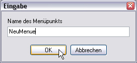 4. Vergeben Sie eine Bezeichnung für das Menü (ohne Bindestrich, Sonderzeichen, Umlaute) und klicken Sie dann auf OK.
