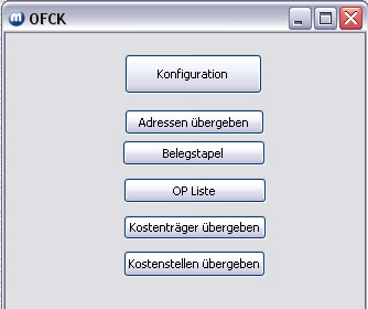 Das Einfügen der Buttons für den Aufruf aller anderen DLL-Funktionen geschieht in gleicher Weise. Unter Dateiname wird immer VGOFCK und unter Pfadname immer DLL eingetragen. Die jeweils abweichenden notwendigen Parameterangaben sind in dem jeweiligen Kapitel unter "Aufrufparameter" aufgeführt - siehe dort.
