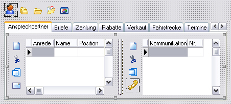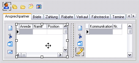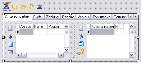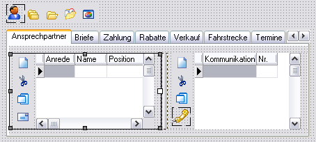 Wenn sich auf einem Register nur Tabellen und zugehörige Buttons befinden, ist eine Markierung der Registerseite u.U. nicht mit einem Mausklick möglich. Um das Register zu markieren, klicken Sie in eine Tabelle - siehe folgende Grafik.