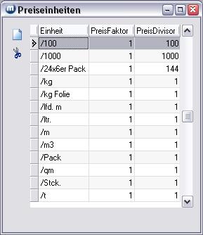 Die Preiseinheiten werden über das Menü Artikel/Parameter/Preiseinheiten aufgerufen. Legen Sie dort alle Ihre Preiseinheiten an.