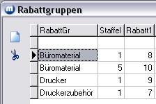Artikel einer bestimmten Gruppe können über die Zuordnung einer Rabattgruppe in ein gleiches Rabattschema eingeordnet werden.