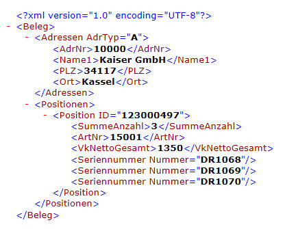 Das nächste Beispiel zeigt die zum Beleg erzeugte XML-Datei im Original.