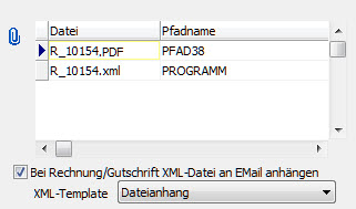 Hier im Beispiel sehen Sie einen Ausschnitt aus dem Register Email mit bereits vorhandenen Email-Belegversanddaten (PDF- und XML-Datei).