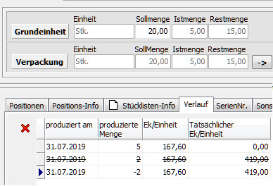 Es findet also eine "Negativ"-Produktion statt. Die stornierte Zeile wird durchgestrichen dargestellt.