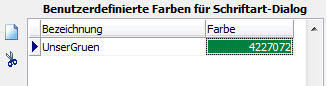 In der Konfiguration, Register System, Register Designer können Sie benutzerdefinierte Farben bestimmen, die dann bei der Farbauswahl der Schriftarten standardmäßig zur Verfügung stehen.