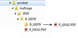 Bei Sammelrechnungen wird eine Kopie des PDF-Beleges automatisch in den entsprechenden Auftrags-Ordnern abgelegt. Bei entsprechender Einstellung werden die PDF-Belege folgendermaßen abgelegt: