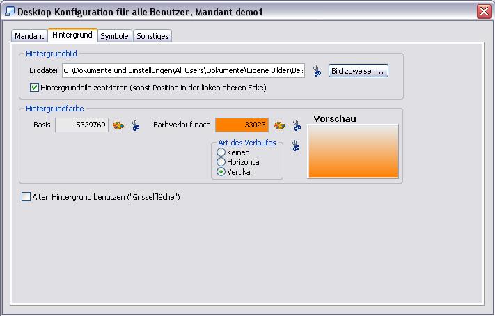 Möchten Sie die ursprüngliche Benutzeroberfläche in grauer Struktur beibehalten, aktivieren Sie das Kontrollkästchen Alten Hintergrund benutzen ("Grisselfläche"). Die Eintragungen im Bereich Hintergrundfarbe werden dann ignoriert.