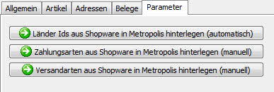 Falls Sie bereits mit einem aktiven Shopware System arbeiten, müssen ggfs. die Länder zwischen metropolis und Shopware verknüpft werden. Dies geschieht über den Button Länder Ids aus Shopware in metropolis hinterlegen (automatisch). metropolis versucht dann die Länder zu identifizieren und trägt die Shopware-ID des Landes in metropolis unter Adressen/Parameter/Länder bei dem dazugehörigen Land ein.