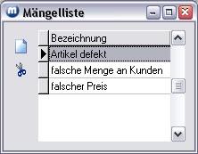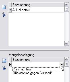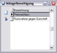 Im Reklamationsbeleg können Sie dann aus der Mängelliste/Mängelbeseitung den gewünschten Parameter auswählen.