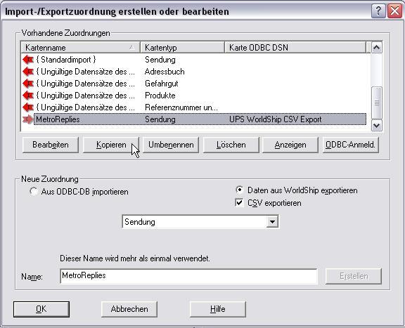 Erstellen der Import-/Exportzuordnung