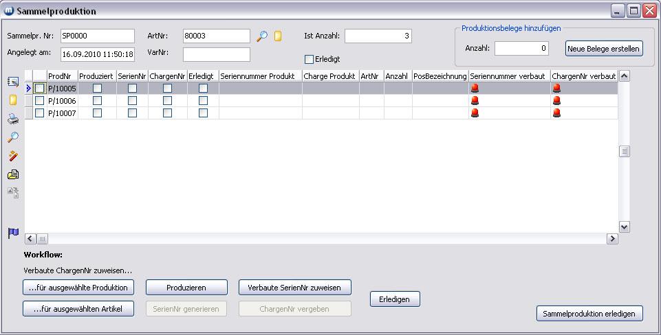 Über das Menü Produktion/Sammelproduktion/Bearbeiten wird immer die zuletzt erstellte Sammelproduktion aufgerufen.