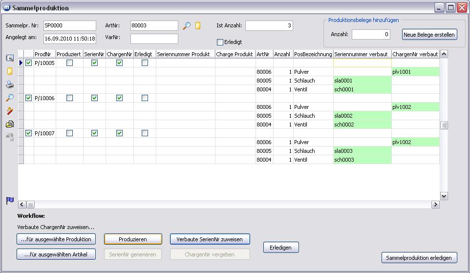 Nach der Zuweisung von Chargen bzw. Seriennummern