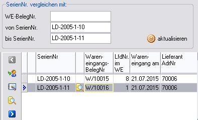 würde in der rechten Tabelle auch hier eine (entsprechend der Daten aus dem Zählsystem) Seriennummern - in der rechten Tabelle stehen. Diese Seriennummer kann dann genauso wie bereits im WE vergebene Seriennummern in die linke Tabelle übernommen werden.