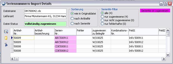 Klicken Sie auf den Button Seriennummern zuweisen, wird die Zuweisung entsprechend Ihrer Auswahl vorgenommen.