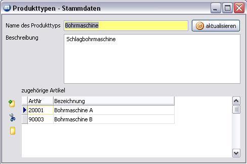 Über den Button Details können diesen Produkttypen die gewünschten Artikel zugeordnet werden.