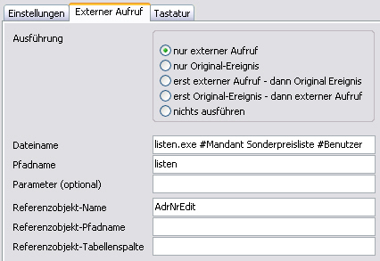 Beispiel für Übergabeparameter zum Direktaufruf aus Adress-Stamm oder Beleg: