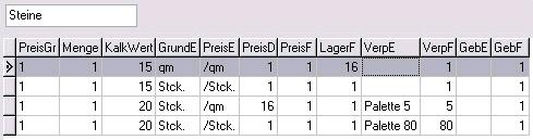 Die Grund- und Preiseinheiten des Verkaufspreises weichen z. T. von der Grundeinheit des Lagers bzw. der Preiseinheit des EP´s ab. Es wird mit Verpackungseinheiten gearbeitet.