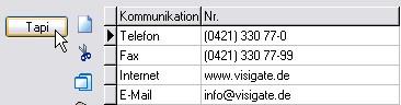 Wenn alle TAPI-Daten ordnungsgemäß eingerichtet sind, aktivieren Sie mit dem Klicken auf den TAPI-Aufrufbutton die Telefonwahl. Es wird die Telefonnummer des aktiven Datensatzes gewählt. Beispiel: