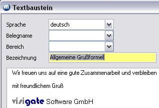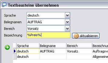 Beispiel: Übernahme eines Textbausteines in einen Beleg