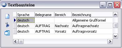 (der untere der beiden Buttons) durchgeführt werden. Zum Anlegen von Textbausteinen - siehe unter "Textbaustein anlegen" - ab 2.)