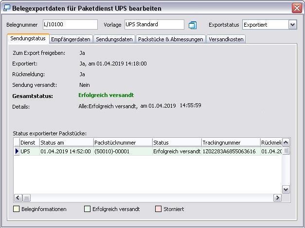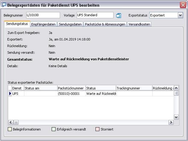 Exportstatus "Exportiert" - Erfolgreich versandt