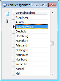 Über das Menüs Adressen/Parameter/Vertriebsgebiete können Gebietsdaten erfasst und zu Gebietsgruppen über das Menü Adressen/Parameter/Vertriebsgebietsgruppen zusammengefasst werden. In den Adress-Stammdaten kann jeder Adresse ein Vertriebsgebiet zugeordnet werden. Soll in den Belegköpfen das Feld Vertriebsgebiet zur Verfügung stehen, kann es über den Designer in den jeweiligen Beleg eingefügt werden. (Datenquelle - Beispiel für Rechnung: Rechnungsdaten.RechnungsSource).