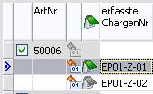 Sie können nun die erste Chargennummer markieren und mit Klicken auf den grünen Pfeil in die Tabelle übernehmen.