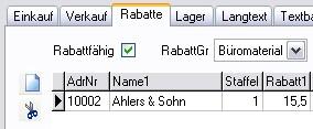 Den adressbezogenen Artikelrabatt könnten Sie auch in den Adress-Stammdaten, Register Rabatte zuweisen.