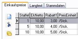 Ausschnitt aus Artikelstamm, Register Rabatte