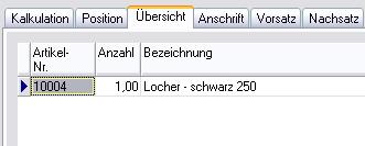 In der unteren Tabelle werden die Artikel (hier nur ein Artikel) des Beleges aufgelistet.