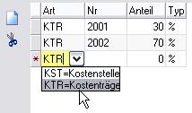 1. Zuerst wählen Sie in der Spalte Art aus, ob es sich um eine Kostenstelle oder um einen Kostenträger handelt.