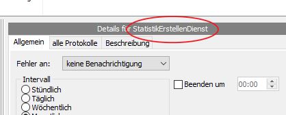Es können alle Startparameter für Dienstmanager-Dienste verwendet werden: Als Parameter wird die Bezeichnung, wie im Dienstmanager unter "Details" beschrieben, eingefügt - siehe Beispiel: |